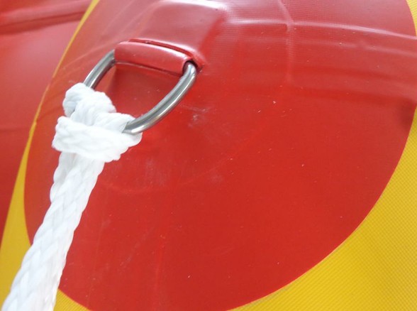 此充氣飛盤采用0.9mm 1100D PVC(特制高科技PVC高分子材料和橡膠合成—股交織聚脂纖維雙面PVC涂層專用汽艇布現(xiàn)稱橡皮材料,特點(diǎn)柔軟顏色豐富,抗拉強(qiáng)度53354N,粘著力5150,抗寒-30度、抗熱+70度。氣囊采用膠粘與高周波熱合工藝加工制作)。
